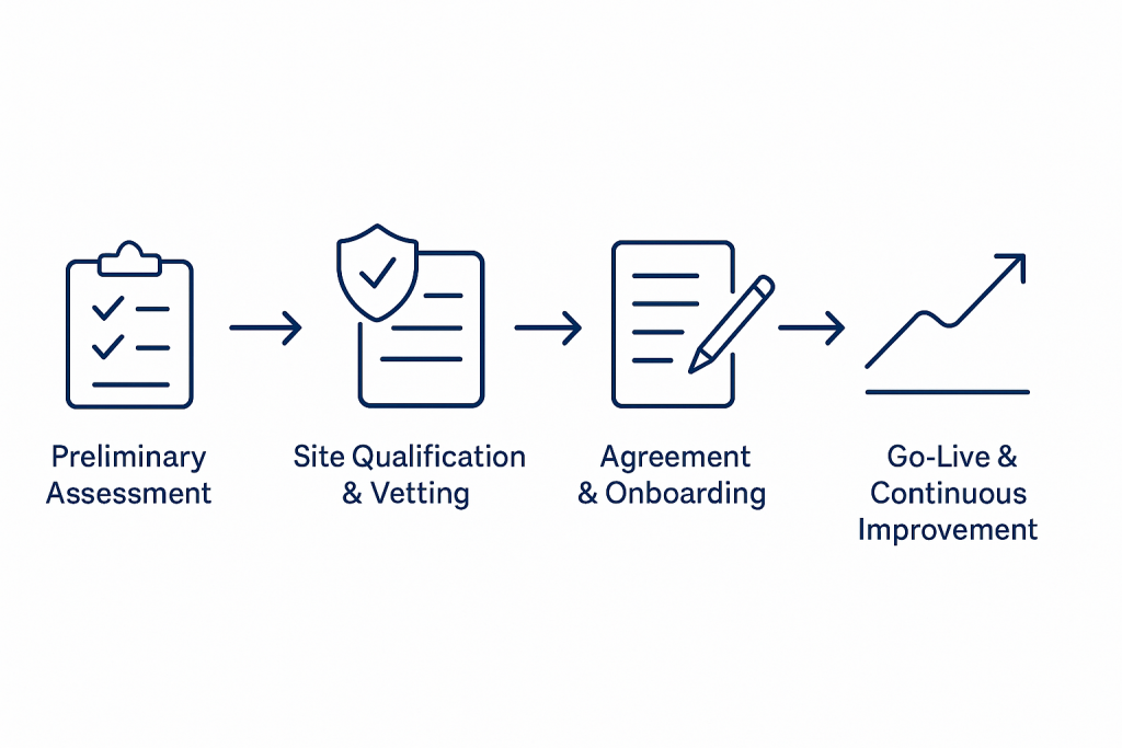 - Within 2–4 weeks of completing onboarding, your site will be “Go-Live” and actively included in all new study negotiations, referral campaigns, and consortium communications.